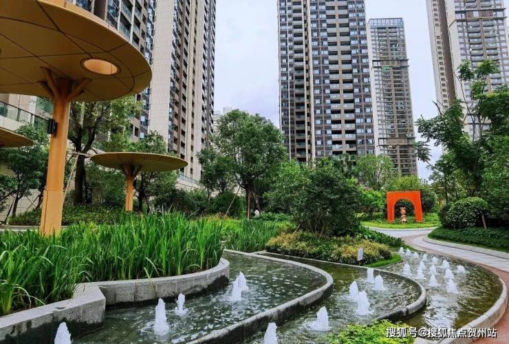 在园林里看玖玖颂阁的建筑设计,半围合设计,视野很开阔,而且因为建筑最高才31层,走在里面没有超高层的压迫感,31层的建筑现在都不多见了,它带来的实际用途就是户型使用率会比较高。