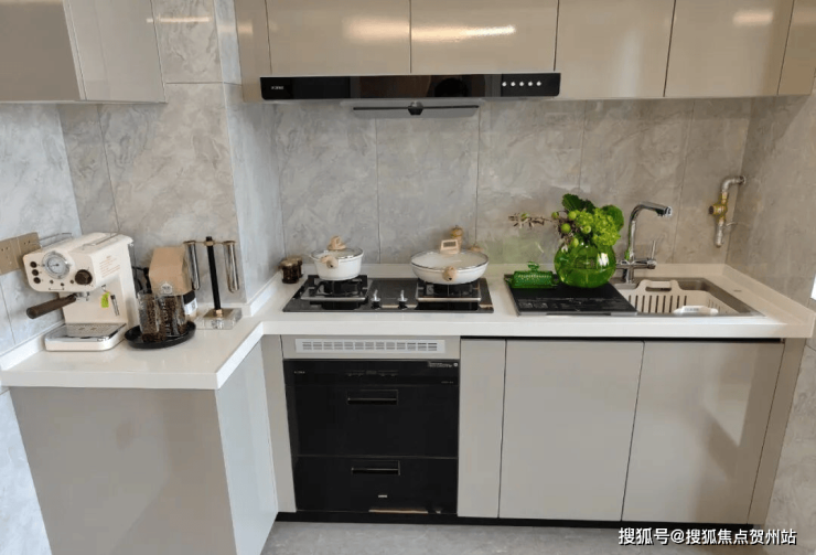 28楼除了实景样板房,还有交楼标准样板可以参观,玖玖颂阁的精装品牌都是国际知名一线品牌,例如厨房品牌是老板或者方太,卫生间用具则选用科勒或TOTO,厨房还配置了水槽洗碗机,整个配置标准不低,这也是宝安有些本土开发商的特点,产品都是实打实的投入的。