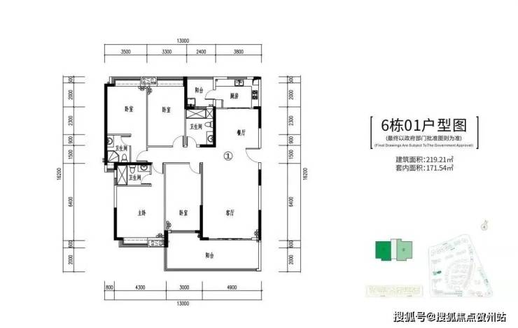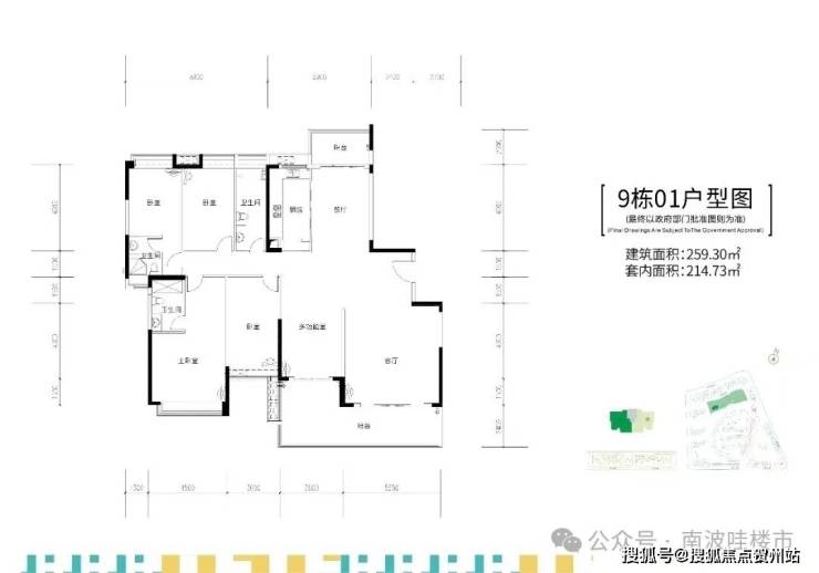 9栋,两梯两户,建面约255-259㎡五房大平层户型