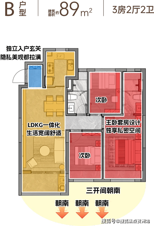户型信息:主力户型为建面 89-122㎡的三至四房,包括 89㎡三房两厅两卫、103㎡三房两厅两卫、122㎡四房两厅两卫。户型层高约 3.0 米,设计方正,空间利用率高,部分户型南北通透,采光通风良好。
