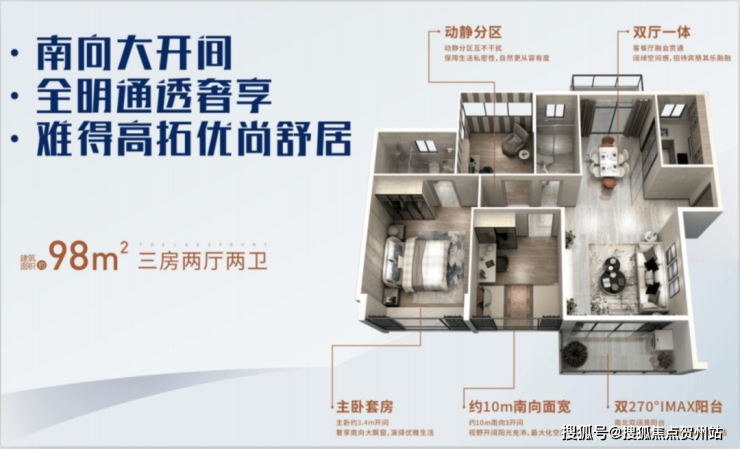 蝶形樓體,270°三面採光通風;全明通透戶型,功能分區合理,品質生活從容有度。