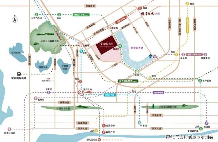 幸福城 I臻园直线距离地铁4号线龙华站约400米、直线距离地铁25号线景龙站(在建中,预计2028年开通)约200米,多地铁和城市快线环伺,未来可速达机场、前海、福田中心区,即是繁华的出发地,也是繁华的目的地。