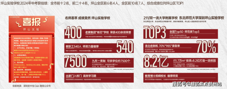 东北师范大学深圳坪山实验学校:直线距离约350m的东师坪实,校长是来自东北师范大学附属中学的教育博士。另外,东师坪实还引进中国人大、武汉大学、香港大学、英国伦敦大学国王学院等海内外知名院校硕士以及北大博士。