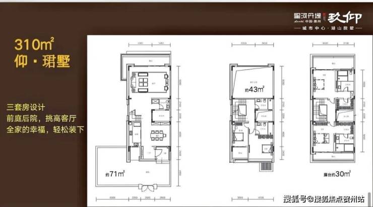 别墅户型:(242㎡合院)-(275-310㎡联排)-417㎡双拼